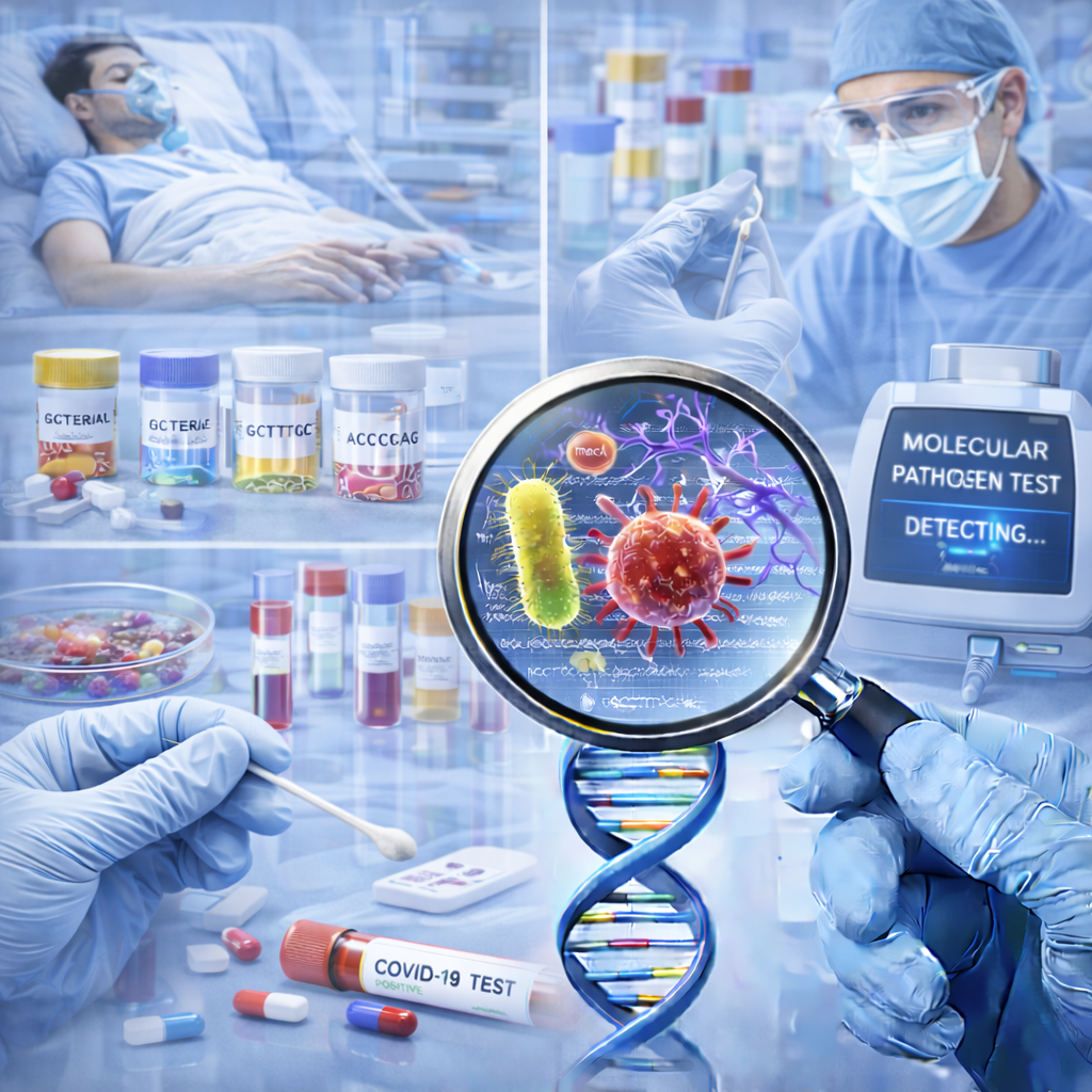 Testing supports detection of viral, bacterial, and fungal pathogens from respiratory, urine, wound, blood, and tissue samples. Molecular diagnostics are particularly valuable for patients with prior antibiotic exposure, severe infections, or atypical clinical presentations.